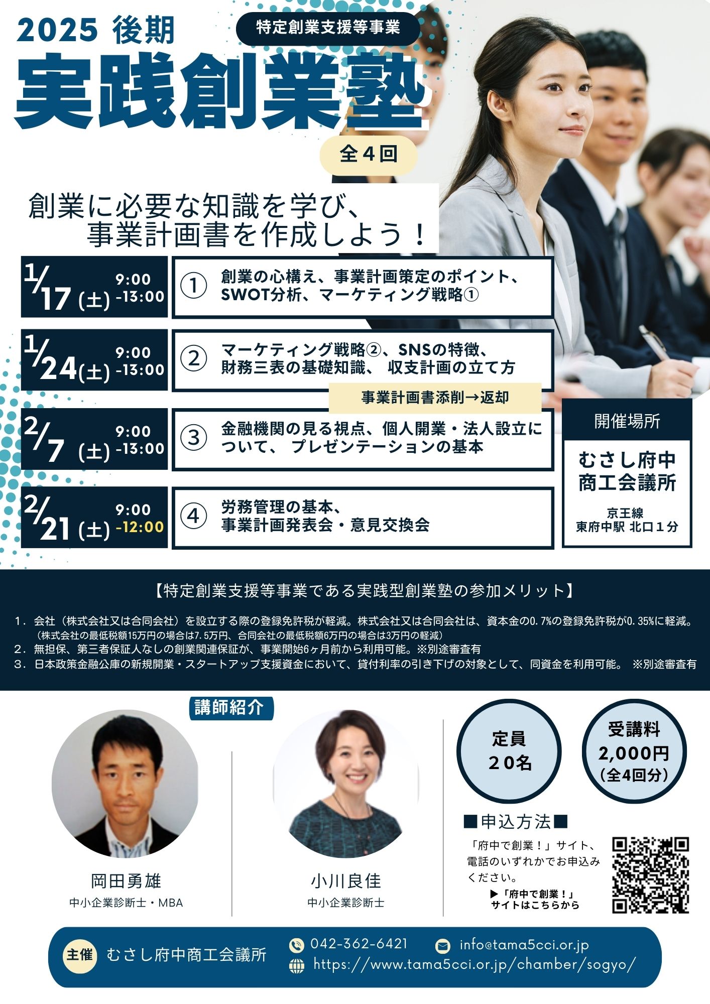 東京都府中市 実践創業塾 後期 (2026/1/17~全4回)